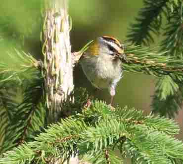 Mais dans les crevasses de l’écorce, les mousses et les barbes de lichen, se cache une nourriture encore plus intéressante : petits insectes et araignées, œufs, larves, chenilles, pupes et autres chrysalides en hibernation constituent la nourriture principale de la fine équipe des conifères…