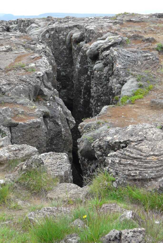 On peut observer de telles fissures, actuelles en se promenant en Islande…