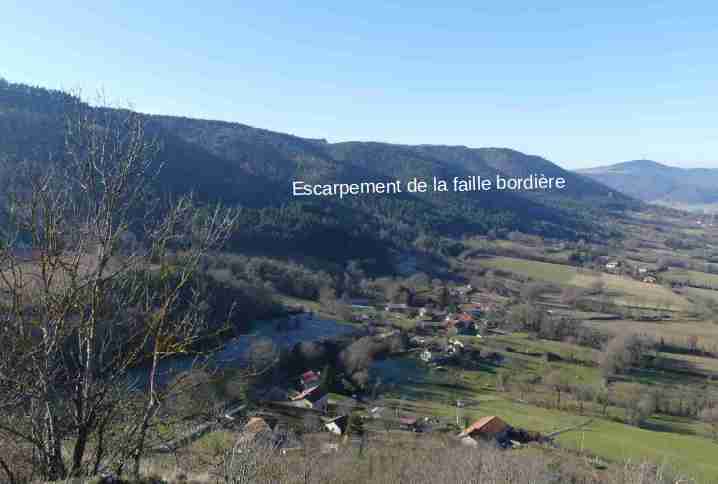La faille bordière est visible dans le paysage : elle décale les terrains granitiques du bassin sédimentaire d’une hauteur d’environ 300 m.