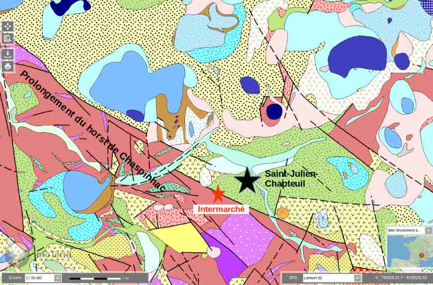 Par exemple le terrassement qui a précédé la construction de l’intermarché de Saint-Julien-Chapteuil a mis en évidence la faille qui met en contact le granite du horst et les argiles du bassin de Saint-Julien, prolongement sud de l’Emblavèz.